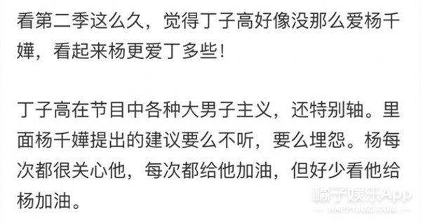 但是,在杨千嬅和丁子高参加了《极速前进》后,很多网友开始指责丁子高,觉得他大男子主义,面对杨千嬅提出的建议要么不听,要么埋怨,好像丁子高没有那么爱杨千嬅...
