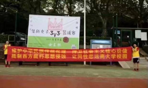 今年,武汉某高校学生拉出横幅反对同性恋,称同性恋违背中华传统美德、社会主义核心价值观,是西方腐朽思想