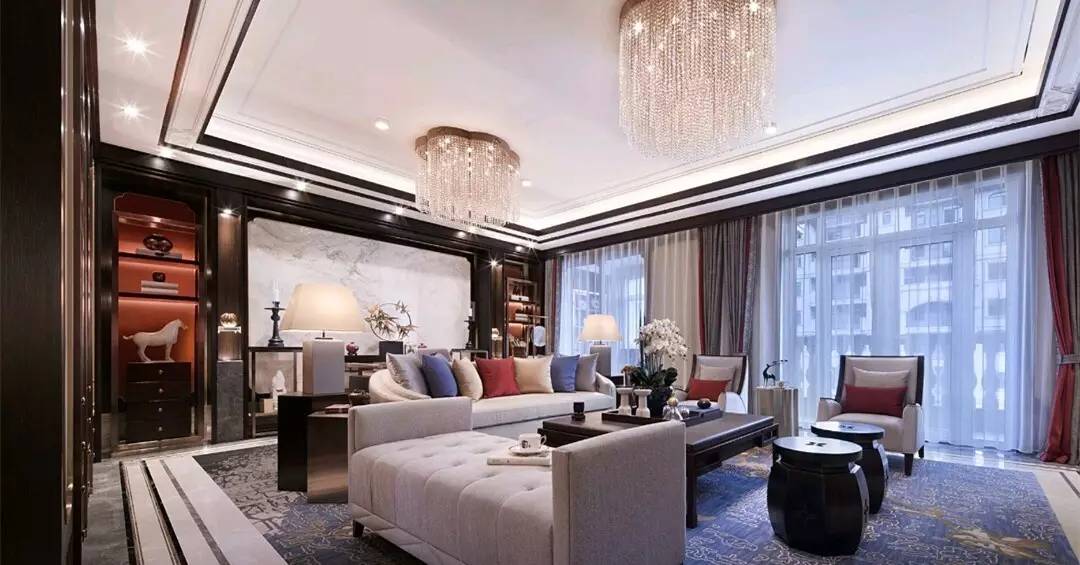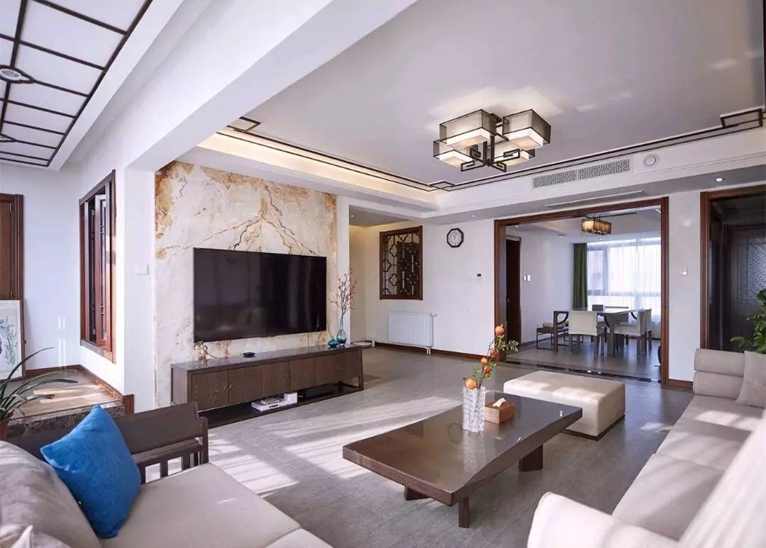 一、客厅中式客厅的吊顶,通常都是做多级吊顶的,这种可以以木线收边,并在吊顶内部做好藏光装饰;面积较大的,还可以吊顶中央部位的平顶部位装上装饰线条,避免大面积的空白显得空洞;