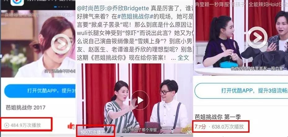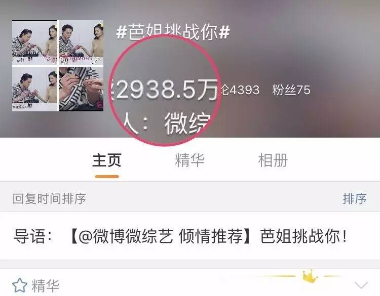 我们当然不会放过拥有千万用户的微博!微博@微综艺更是频繁把《芭姐挑战你》推上热搜位,而且在任何人的微博中,只要带有#微综艺#话题的,就会瞬间搜索到我们的节目。据不完全统计,每天浏览微博的人数不下千万次,这么想来,视频播放量已然不用芭姐多说了吧。