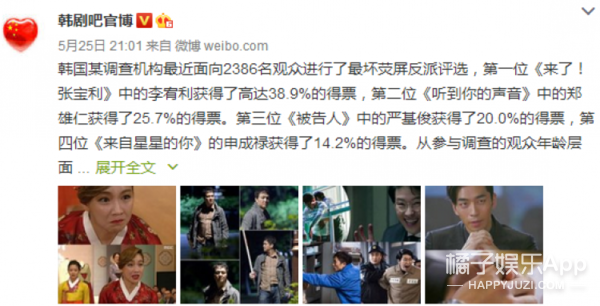 最近韩国某机构让观众票选最坏的荧屏反派。