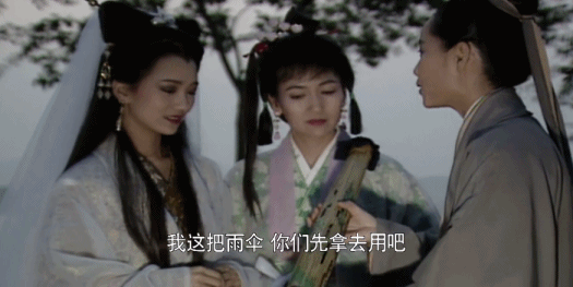 临走之时,小青再次刁难,又来了一次蛇工降雨。心(坠)思(入)纯(爱)正(河)的许仙因为担心白娘子,赶紧就将自己的雨伞送上。