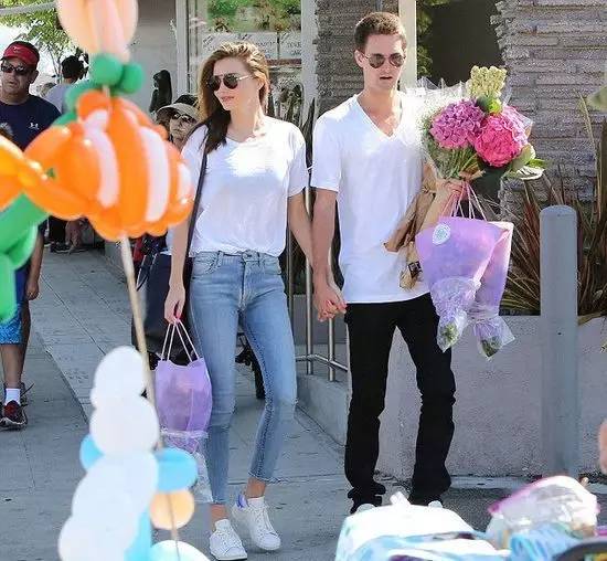 2015年7月12日,可儿和埃文在洛杉矶农贸市场手拉手逛街被媒体拍到。两人都穿着白色情侣T恤,手里还拿着鲜花,浪漫到不行。