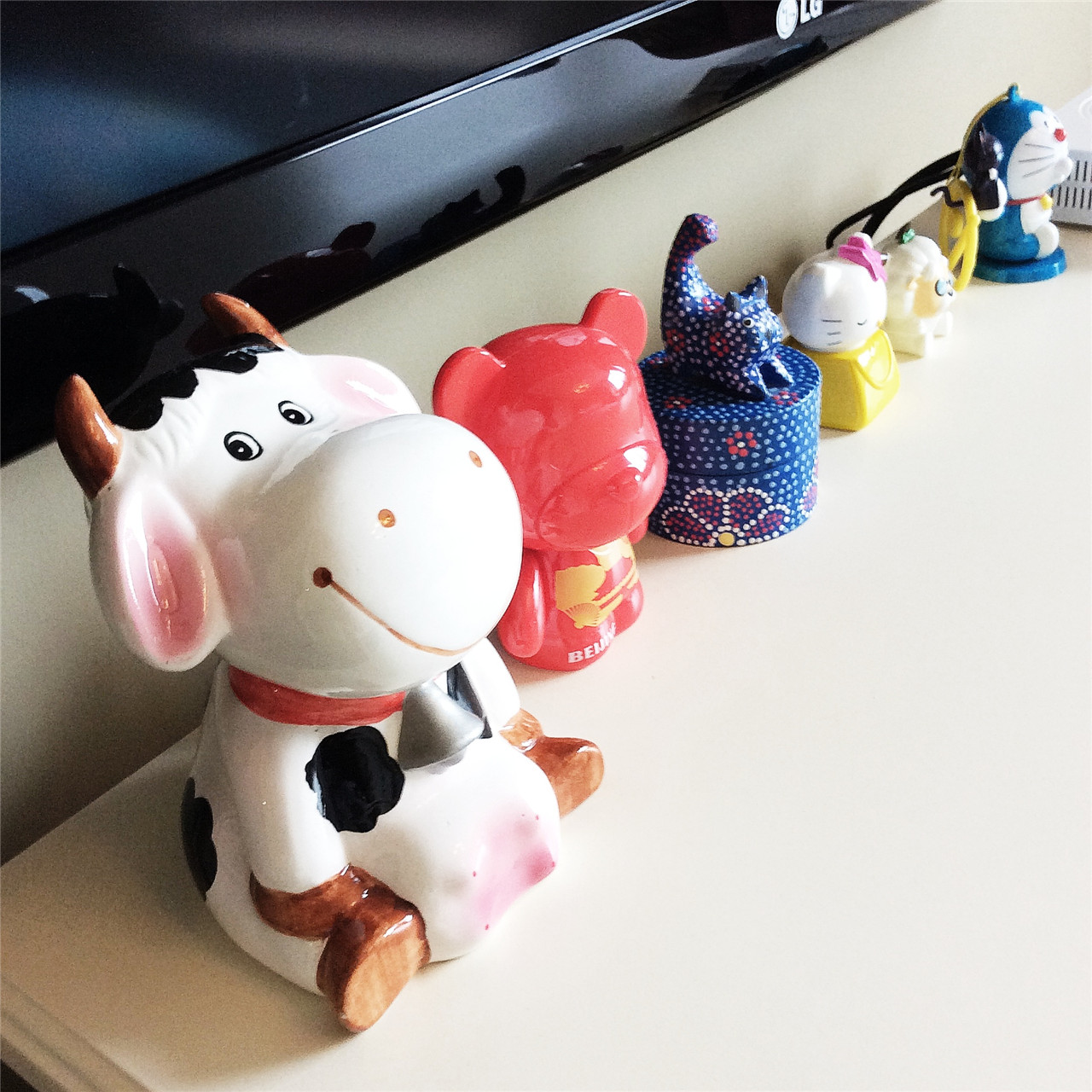 ▼电视柜上面摆放了许多有创意的小玩意,可见主人是一个很有爱心、很卡哇伊的人;