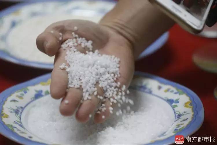 工程师解释道,“这款‘塑料大米’在制作工艺上加入了杂质,导致有的沉下去。一般应该全部浮起来。”