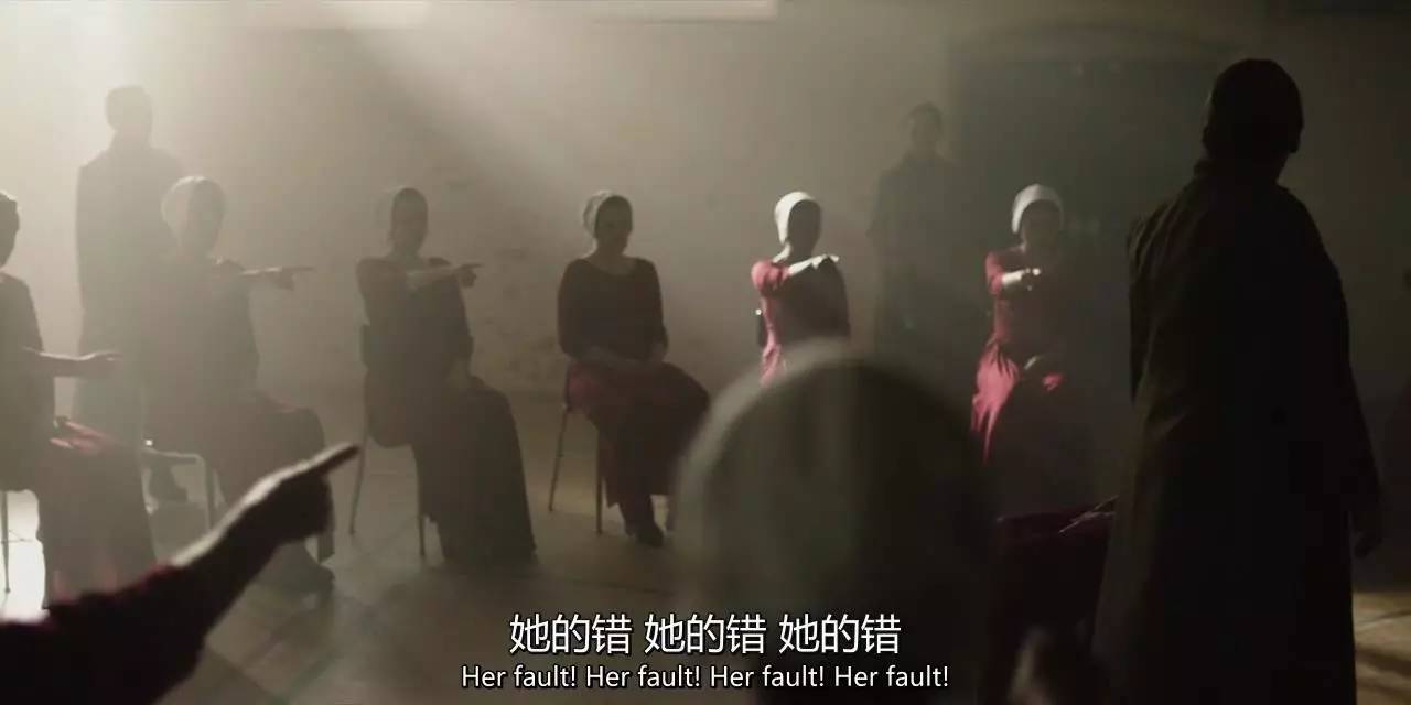 嬷嬷指着那个被惩罚的女孩,带头问她被轮奸是谁的错时,独裁面前不愿被怀疑受罚的使女们几乎是不约而同地,说是被惩罚女孩的错