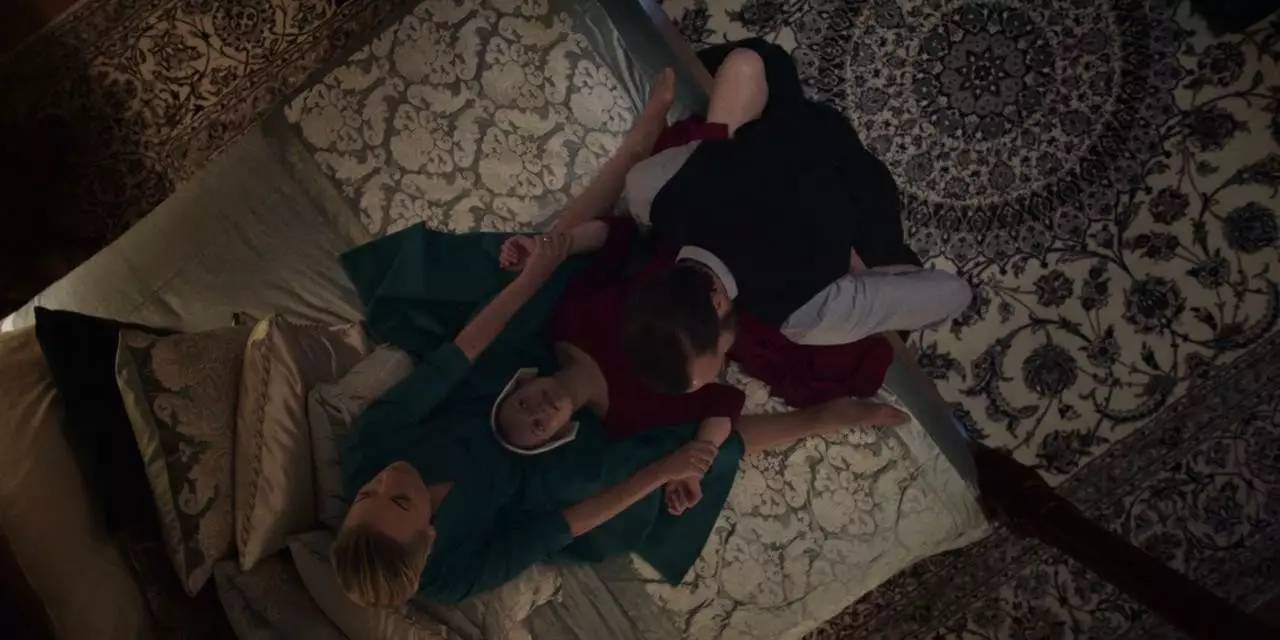 典礼的过程是一场匪夷所思的3P,使女躺在女主人的双腿之间,张开双腿,男主人则站在床边。