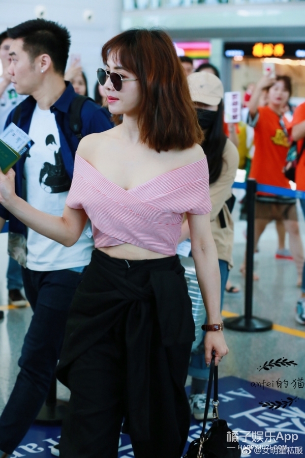 粉色的条纹交叉露肩装真的是瞬间吸引了橘子君的眼球!配上白皙的皮肤真的是让人喜欢的不得了!