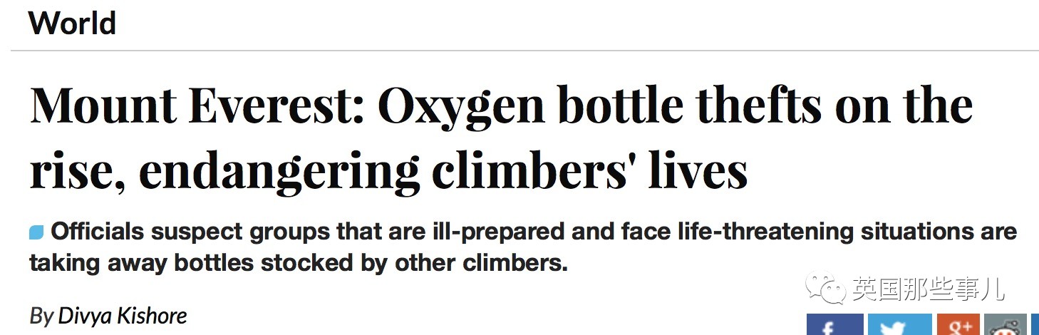 早从2012年开始,就有少数登山人员抱怨在登顶过程中氧气瓶被偷...