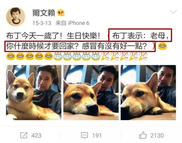 而且,再多嘴讲一句,他晒狗的微博充分体现了一位优秀段子手的自我修养↓
