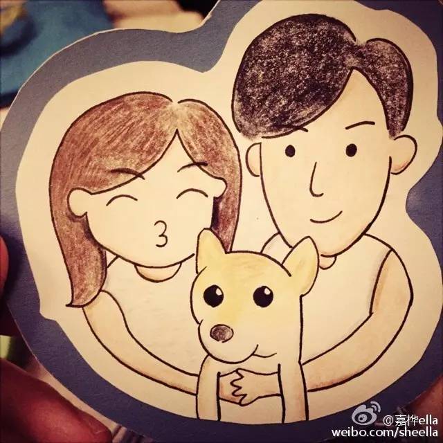 比如在他们微博上随手可见的Ella+老公+布丁的全家福