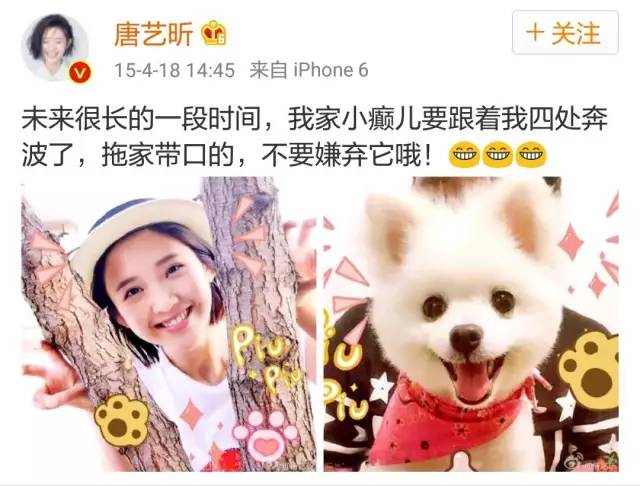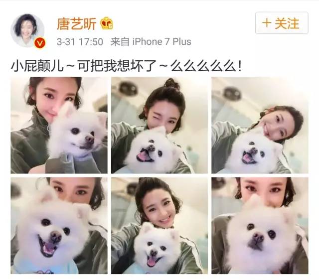 说回来,这么巧唐艺昕也养狗,