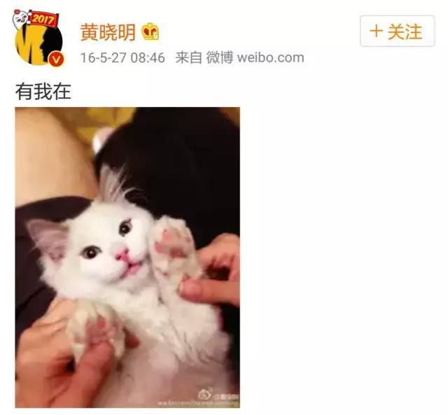 还有黄教主,有一次晒出自己跟Angelababy,一人一只手握住猫咪,也是含蓄又高糖~