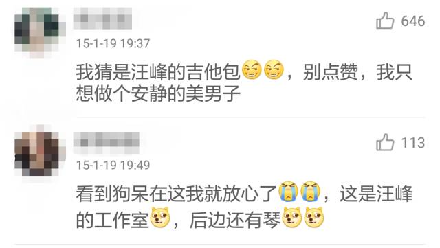 所以,这几乎是道送分题啦!子怡其实是在说,我家狗狗在峰哥的工作室撒欢呢~