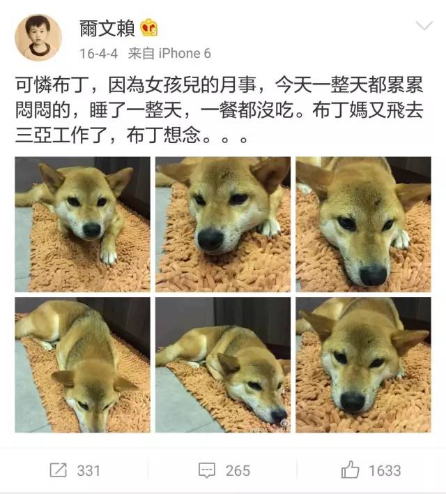 在微博晒狗他也是他日常固定动作了,