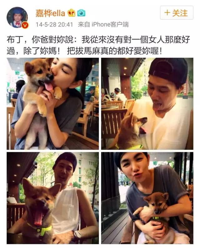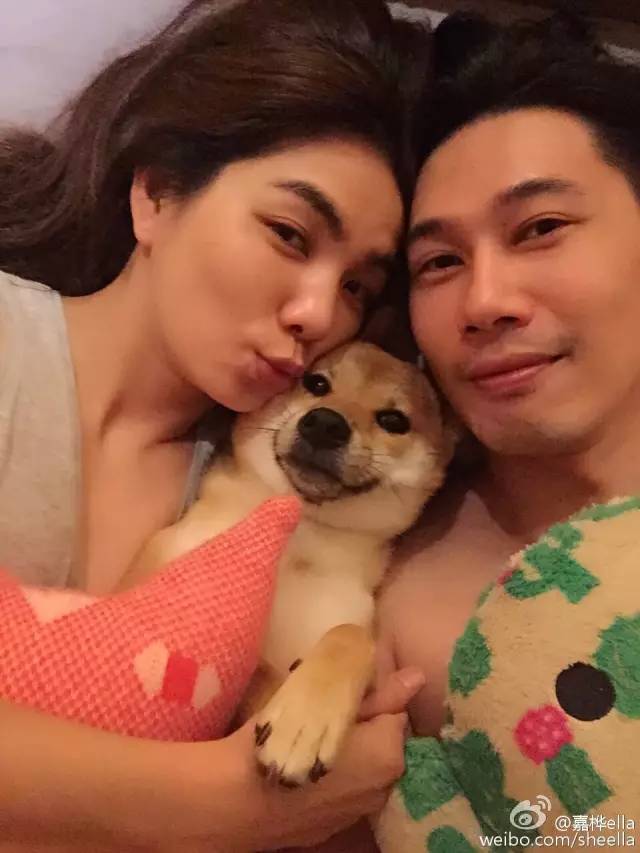 当然不是所有明星都是这样犹抱琵琶半遮面地秀的~Ella和她老公,用他们家的狗狗布丁秀气恩爱来,就相当高调。
