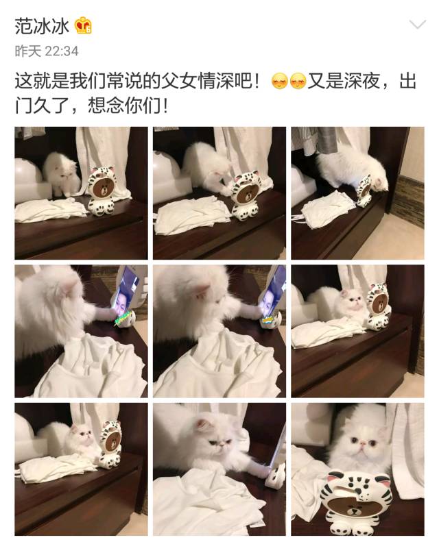 后来,范冰冰晒出的猫咪图,