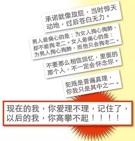 谁知后来舒淇在脸书上大发感慨:“承诺就像放屁”、“回忆里那个人不一定会怀念你”、“现在你对我爱理不理,以后的我让你高攀不起”…… 这一大段的情感鸡汤,看起来很像是失恋了啊?