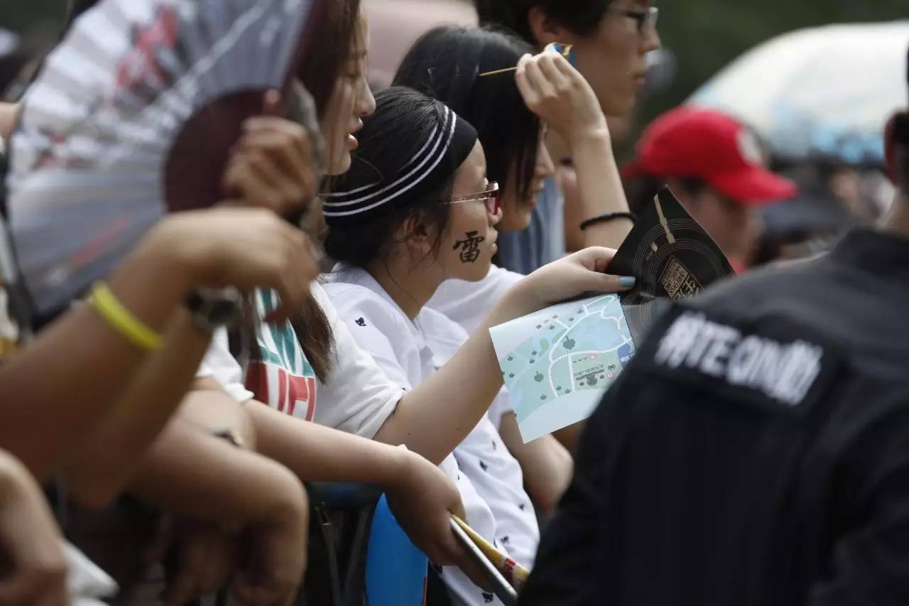 黄牛在最后一搏,看到带证的必边甩着手上的一叠百元人民币,边问“有没有多的票”,只要多看一眼太子湾前的入场队伍,也必会被逮到问“要不要票。”小贩已经看准了赵雷的粉丝,在街边摆摊卖写着“不想长大”的红领巾,赵雷的粉丝一早就等在太子湾门口,脸上画着“雷”字,有人说“支持赵雷”,旁边的又补充一句:“必须的!”