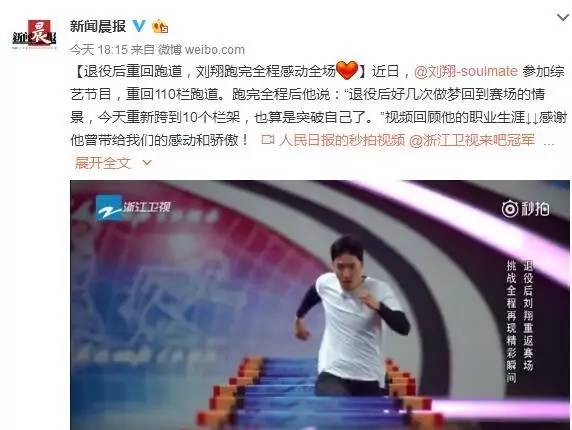 【退役后重回跑道,刘翔跑完全程感动全场[心]】近日,@刘翔-soulmate 参加综艺节目,重回110栏跑道。跑完全程后他说:“退役后好几次做梦回到赛场的情景,今天重新跨到10个栏架,也算是突破自己了。”视频回顾他的职业生涯↓↓感谢他曾带给我们的感动和骄傲!