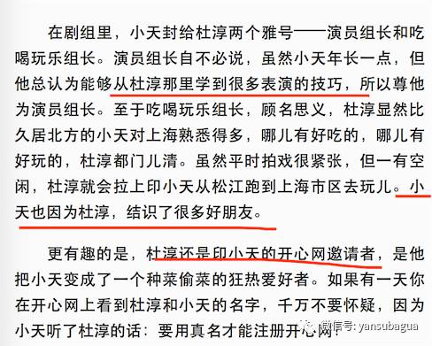 因为印小天曾经跟杜淳很好,“戏里戏外皆兄弟”。