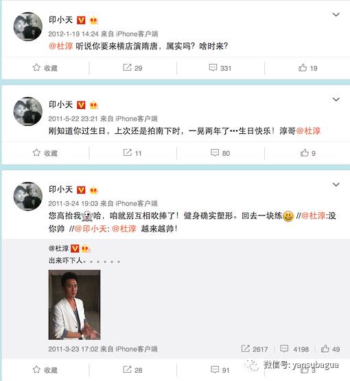 印小天对杜淳有多热情?看当年的微博艾特就知道了:夸他帅、祝福生日、主动艾特他问什么时候来横店。