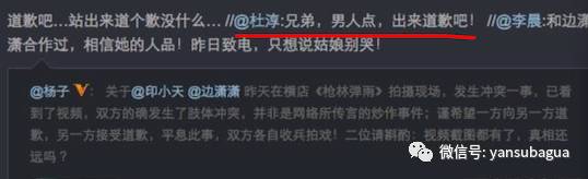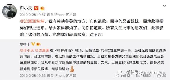在此事中一直很积极的杨子说,双方冰释前嫌,希望圈内兄弟姐妹删微博。印小天转发跟边潇潇道歉,跟圈内朋友道歉。