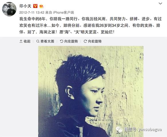 在代言更替的时刻,印小天发的微博是这样↓