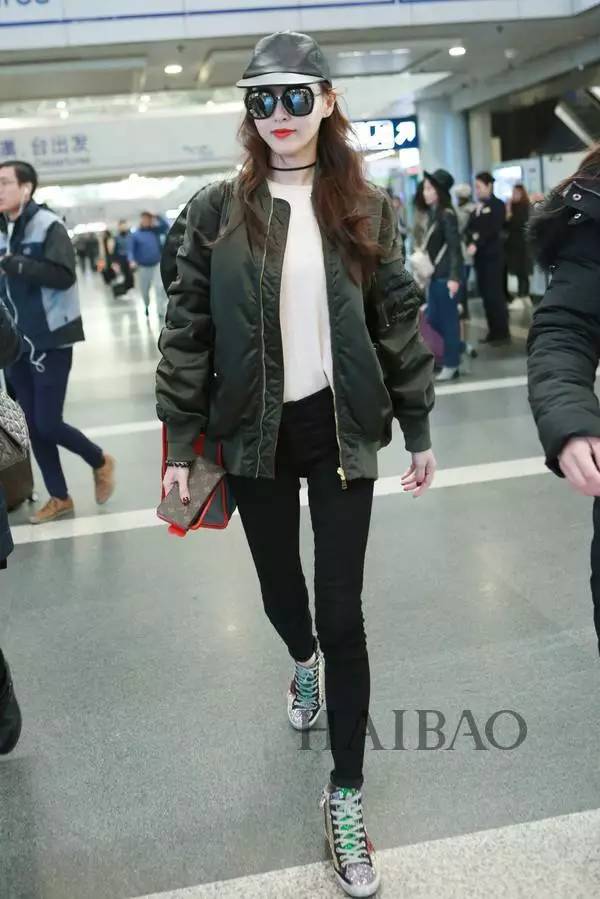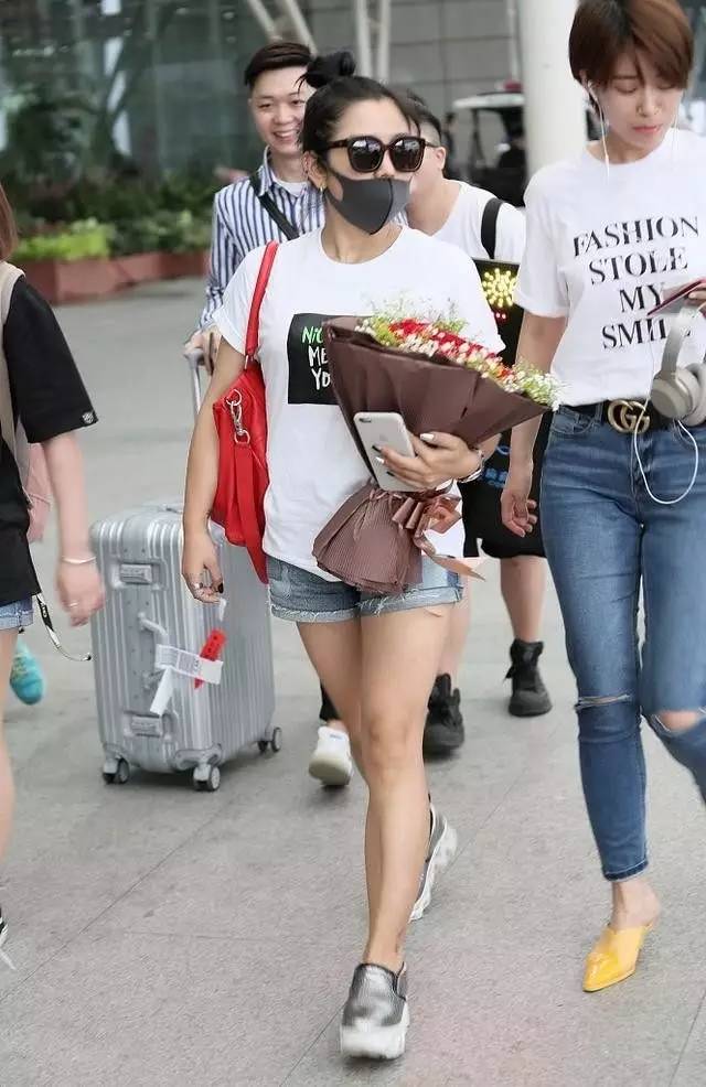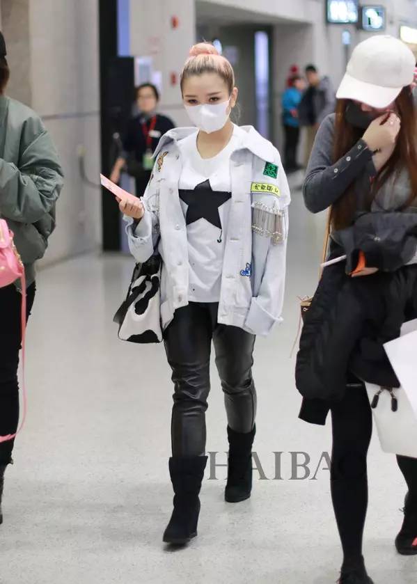 日前何洁现身首都机场↓