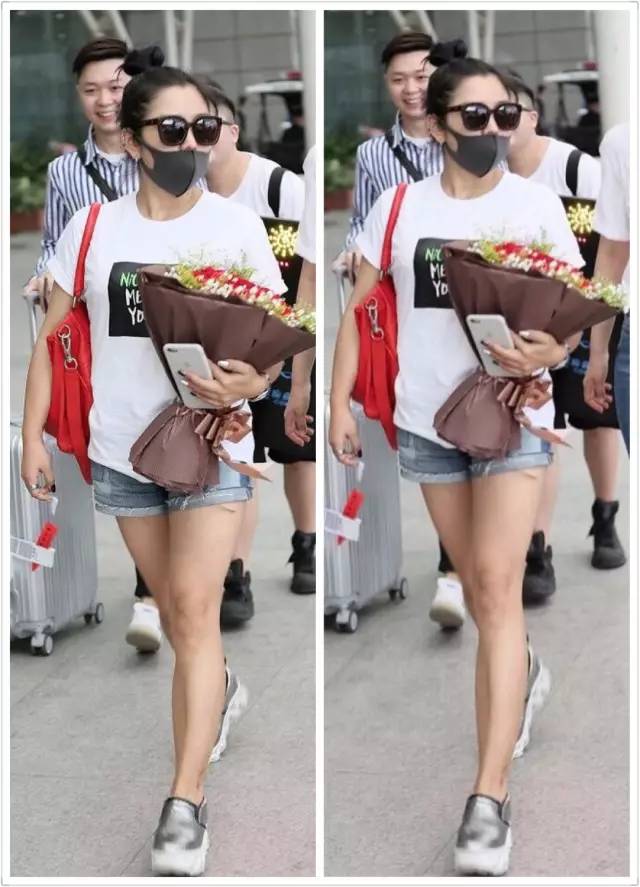 娱乐君将何洁日前的机场照稍加修饰,大家请看对比图↓
