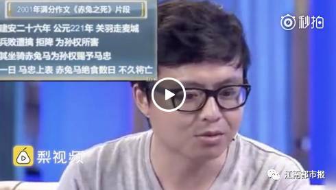【高考满分作文第一人:写时就知会火】每年高考都会涌现很多优秀满分作文,但2001年用古白话写出“赤兔之死”的蒋昕捷恐怕是满分作文第一人。凭借这篇作文,他破格被南京师范大学录取。他曾在采访时说,写这篇文章时,监考老师站在旁边看了好久。
