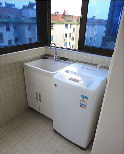 ▼阳台,做成了洗衣区,大洗衣盆,用起来十分方便,而且再也不用担心会溅水到地上了;