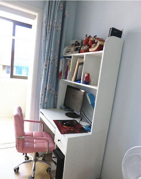 ▼白色的成品书桌搭配一款粉红色的办公椅,少女感十足;