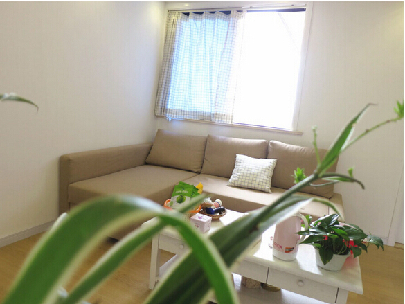 ▼同样是宜家采购的L字形三人位沙发,柔软的布艺质感,躺在上面看书或者看电视都是个很不错的体验;