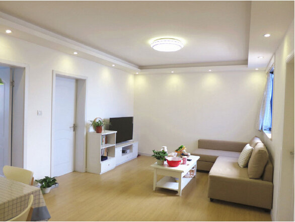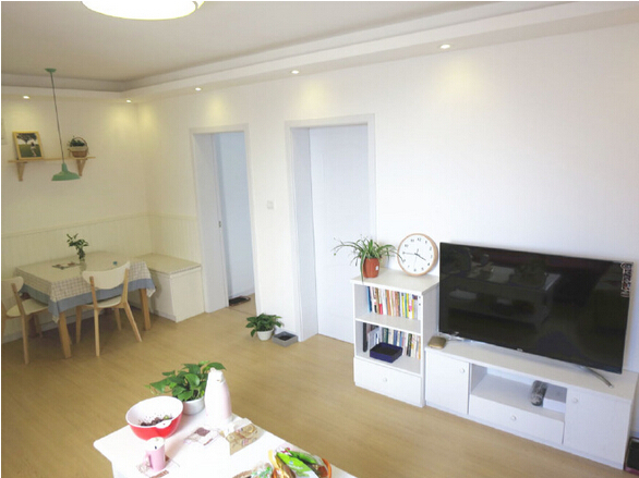 ▼客厅,我能想到的还是用简洁来形容,墙面简单的刷了大白漆,地面铺了浅色的木地板,天花走了一圈简单的吊顶,硬装如此,软装上亦是如此,只搭配了外观简洁的家具。