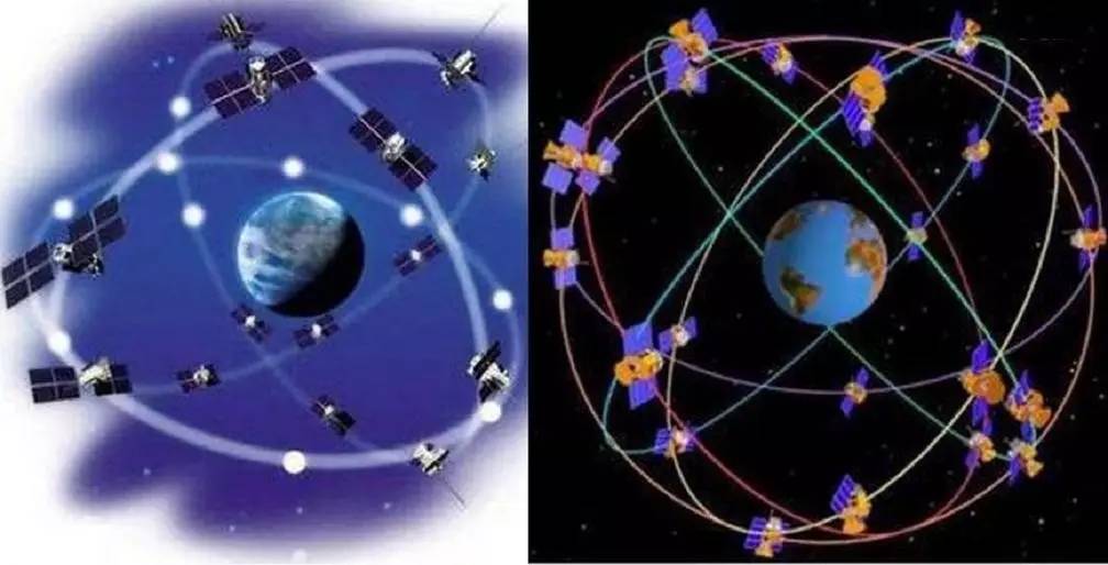图注:北斗(右)与格洛纳斯(左)卫星星座图。二者联合将形成世界规模最大的卫星导航系统。