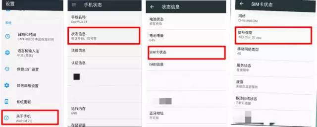 知道数字怎么用①进入【设置】,然后在最下面的菜单项中找到【关于手机】,点击进入。接着找到并进入【状态消息】,进入后再点击【SIM卡状态】,这时就可以看到“信号强度”,如图示,里面显示为:-103dBm37asu。