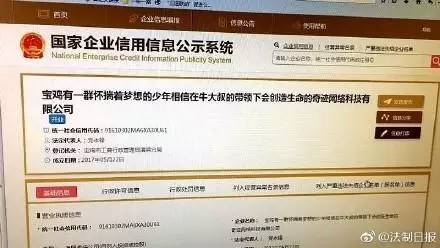 这家被网友赞为“霸气”的企业名称为:宝鸡有一群怀揣着梦想的少年相信在牛大叔的带领下会创造生命的奇迹网络科技有限公司。