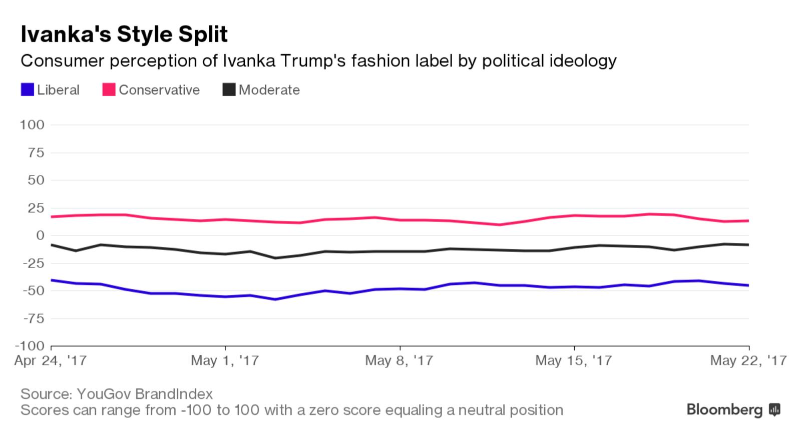 消费者对伊万卡·特朗普品牌的态度呈现两极分化,其原因正是造成美国社会两极分化的政治分歧。据调查公司YouGovBrandIndex称,保守派消费者对该品牌的印象略微正面一些,温和派和自由派的消费者对品牌持明确的负面态度。