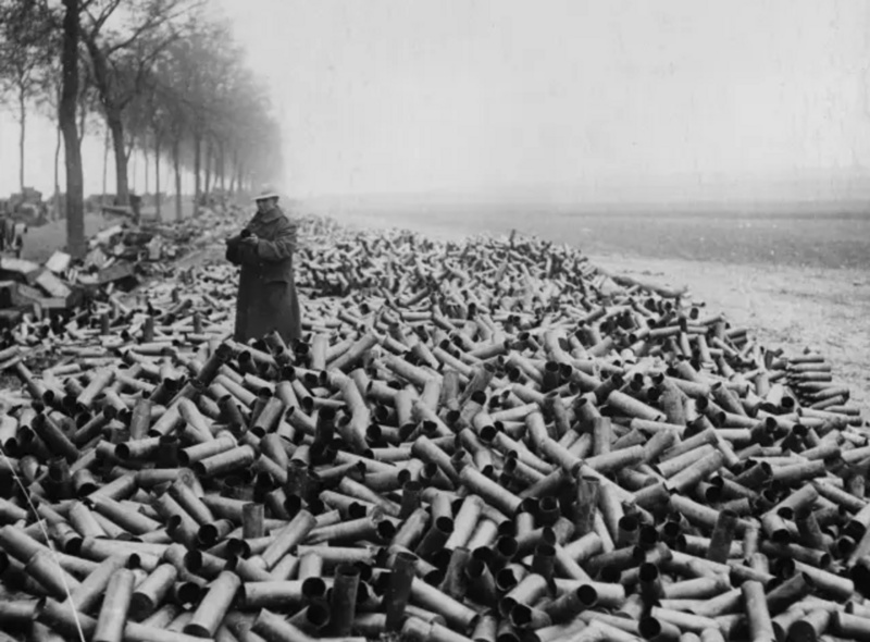 一战某个战场一角,炮弹壳一望无际,炮灰杳不可闻