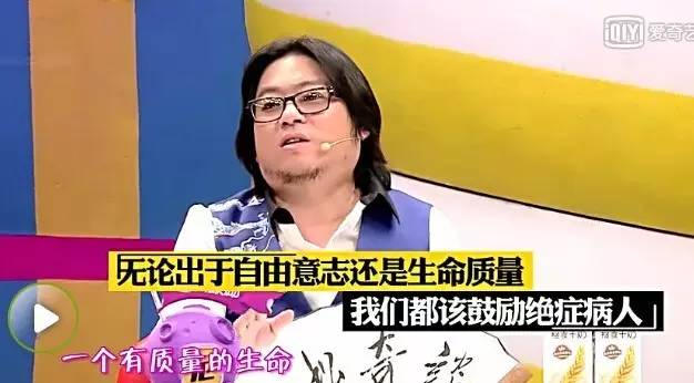 高晓松认为,“无论出于自由意志还是生命质量,我们都该鼓励绝症病人。我鼓励你撑下去,但是我尊重你的选择。”
