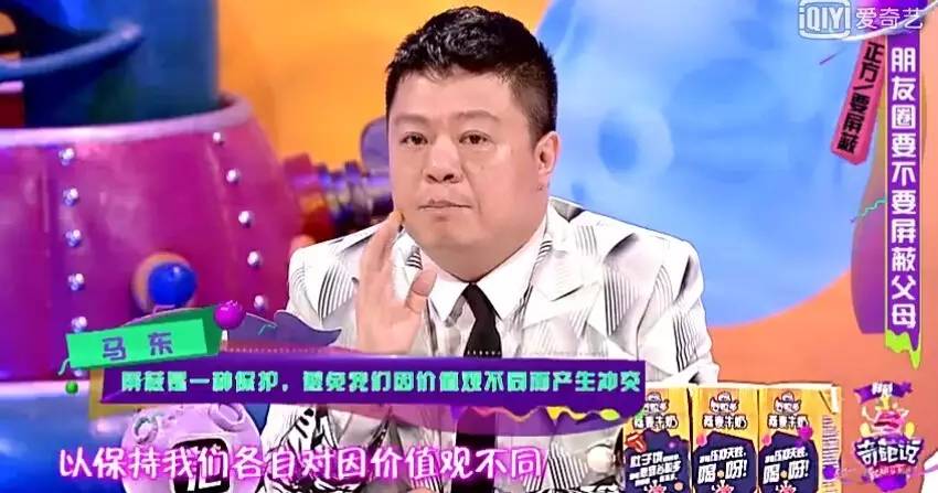 而马东则认为应该屏蔽,“屏蔽是一种保护,避免我们因价值观不同而产生冲突。是对自己的尊重,对父母的保护。”