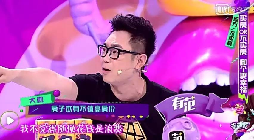 大鹏表示,“对这个结果,我表示很失望,现在年轻的一代竟然还有这么多人提倡买房,我想告诉大家的是,经济能力达不到就不要买房,有钱还不如花在自己身上,吃点好的,穿点好的,这些钱花的都比买房子要值,为什么不提倡买房,因为我本身就是学建筑的,北京的房子根本就不值现在这个价。”