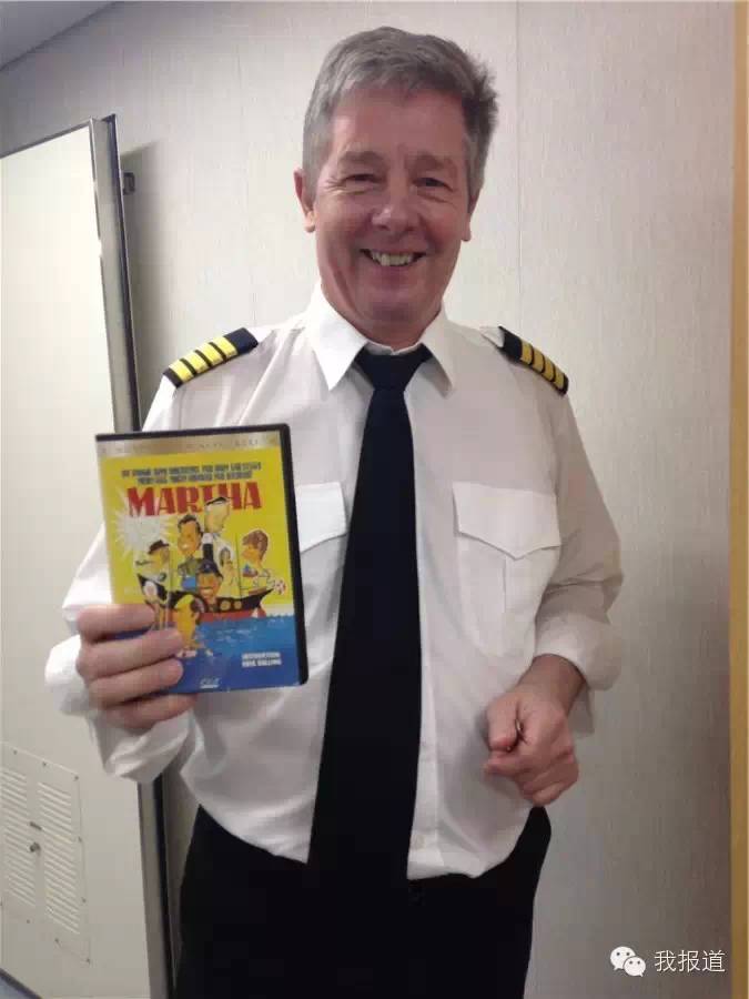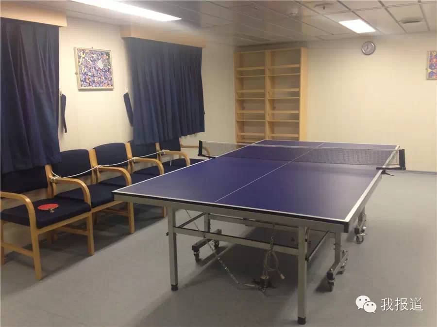 图从上至下依次为“美腾号”上的电影院、乒乓球室约翰森船长手持丹麦电影《Martha》的DVD。