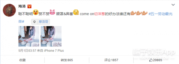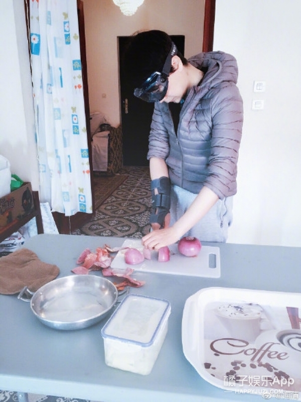 连“国民媳妇”海清都使出了神器——眼罩&鼻塞来切洋葱,喔唷!这套装束看着还挺帅气。