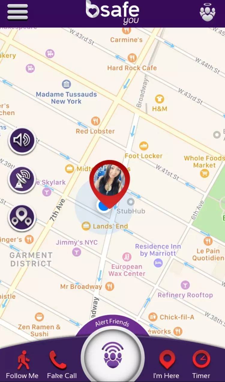 这个叫做bSafe的APP可以让朋友在APP上“护送”回家,时刻关注你的动向;也可以在发生危险时,第一时间警报和位置发送到朋友的手机上。