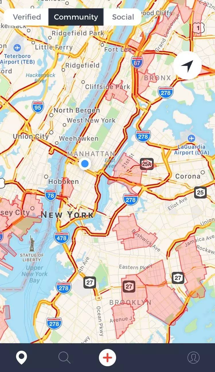这个手机APP可以显示周围环境的安全指数,标注出危险区域。