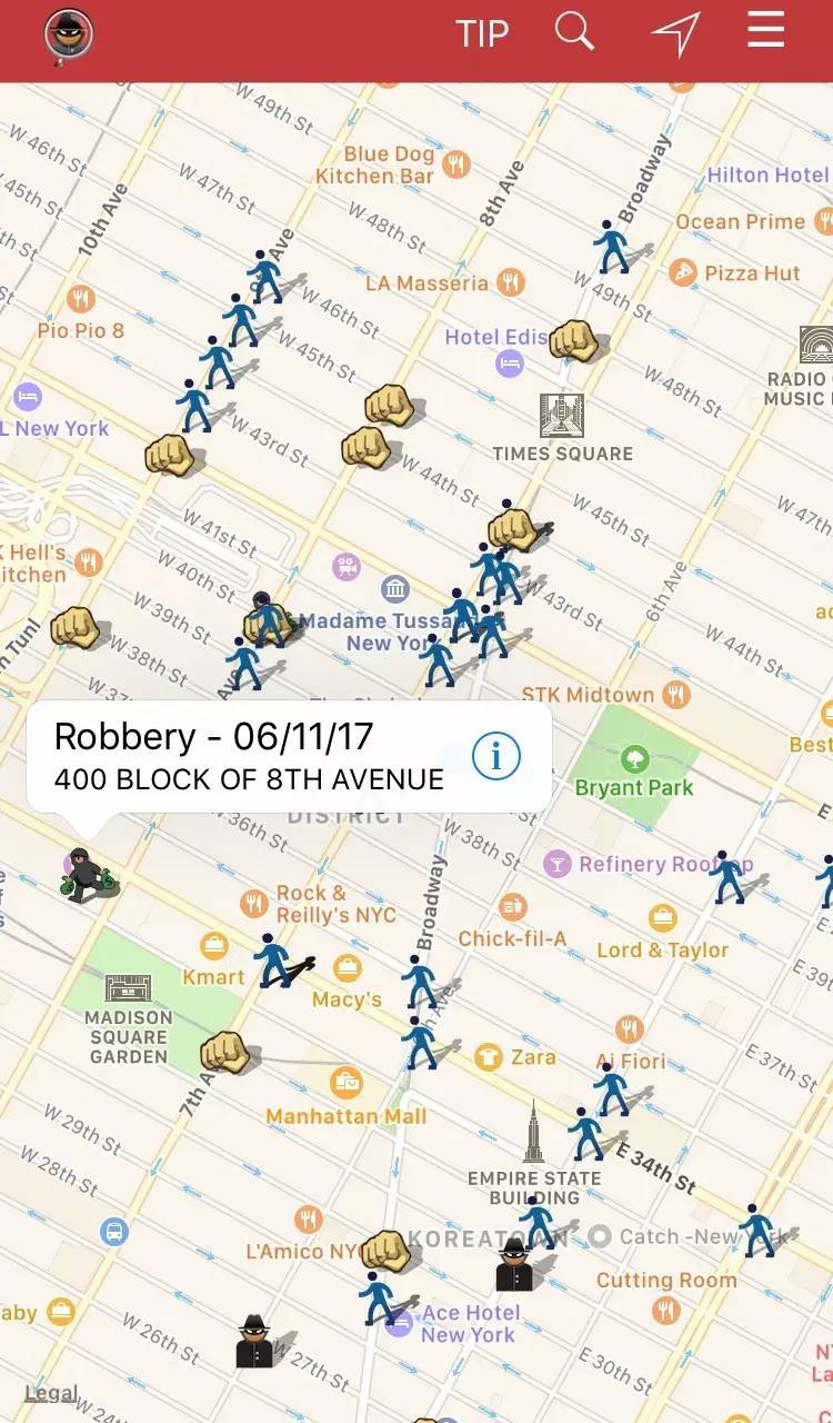 再比如这个叫做SpotCrime的APP,它可以显示近期附近的各种犯罪活动。