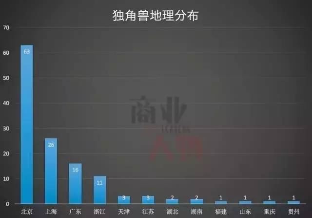 130只独角兽,北京有63只130只独角兽,北京有63只,紧跟其后的上海、广东、浙江加起来都没北京多。BAT里只有百度总部在北京,但互联网“少壮派”的TMD可是都扎根于此。