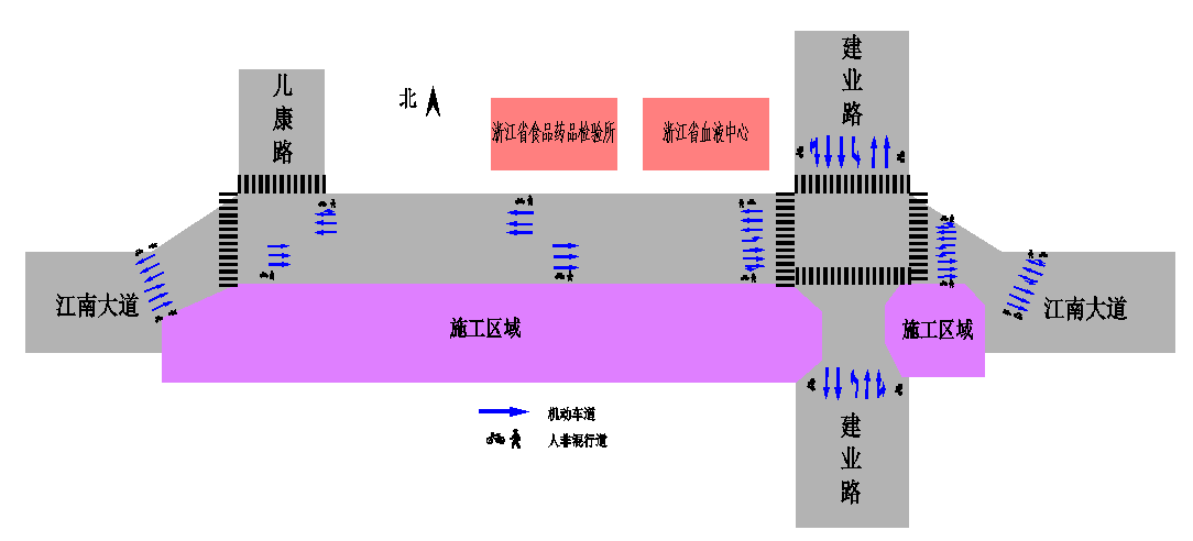 交通改道信息施工期间,交通导改坚持“占一还一”的原则,施工涉及的江南大道、建业路、儿康路主路面车道数不变: